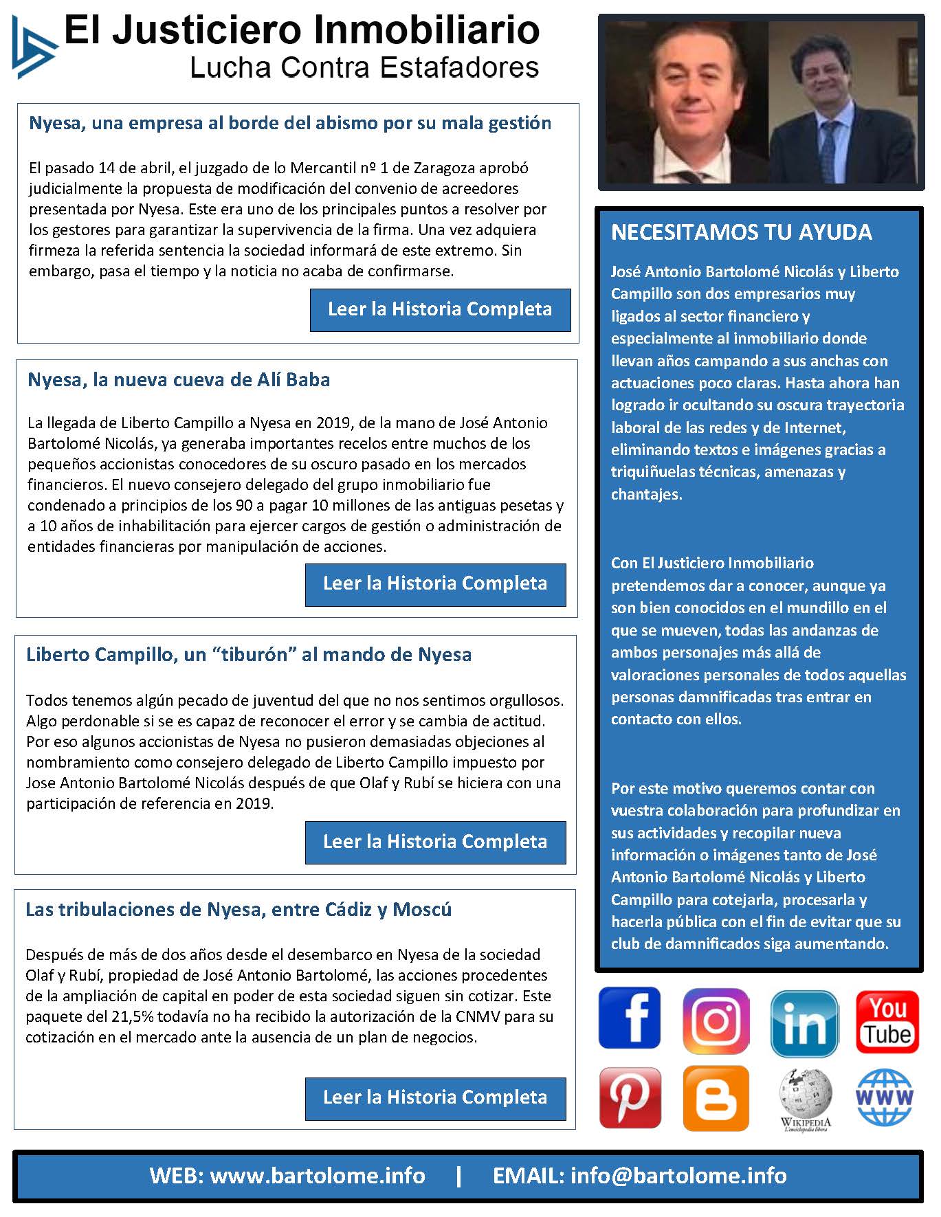 Por este motivo queremos contar con vuestra colaboración para profundizar en sus actividades y recopilar nueva información o imágenes tanto de José Antonio Bartolomé Nicolás y Liberto Campillo para cotejarla, procesarla y hacerla pública con el fin de evitar que su club de damnificados siga aumentando.